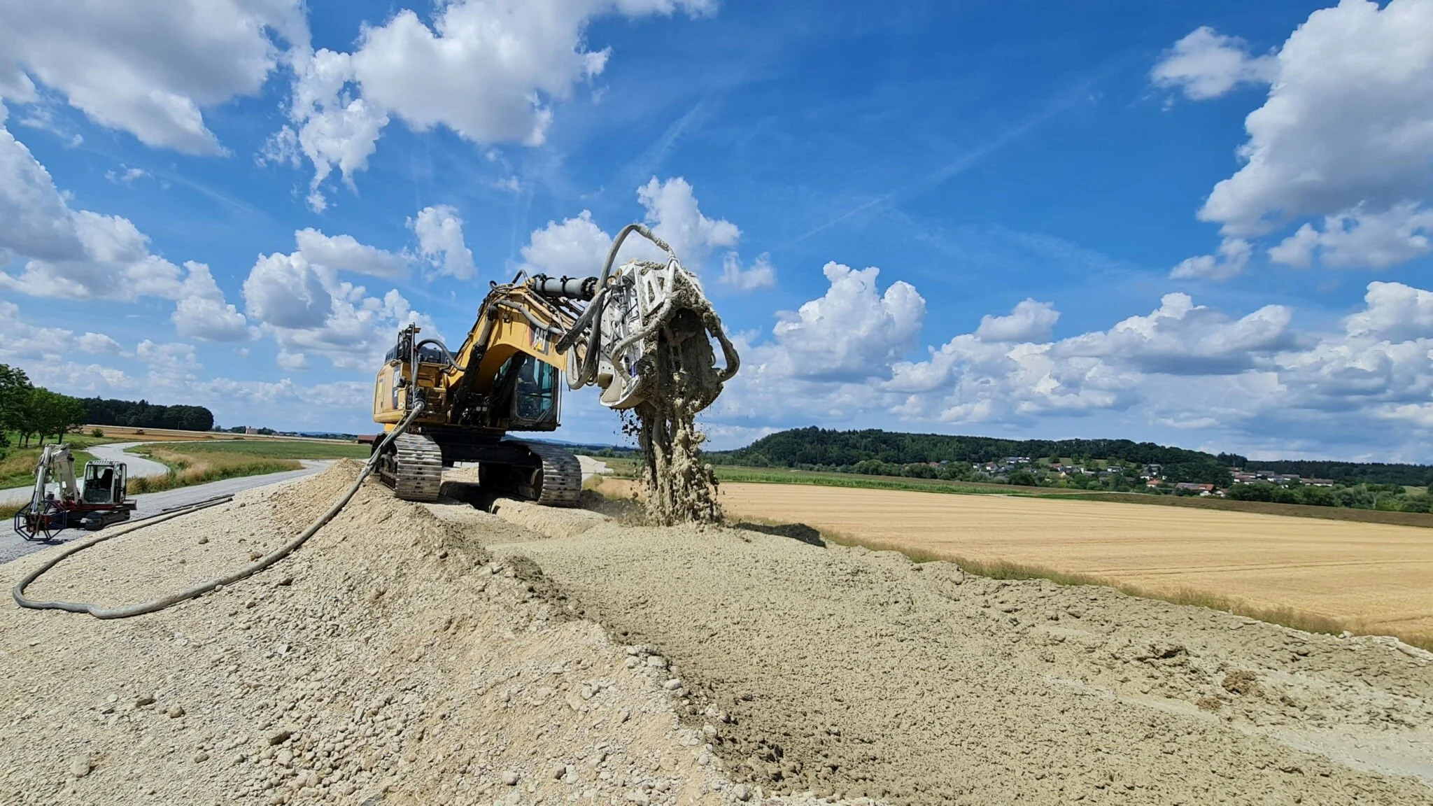 The Kemsolid KSI process is a specialised soil stabilisation system that uses an excavator attachment to inject and mix a defined concrete suspension into rock and soil earth layers.